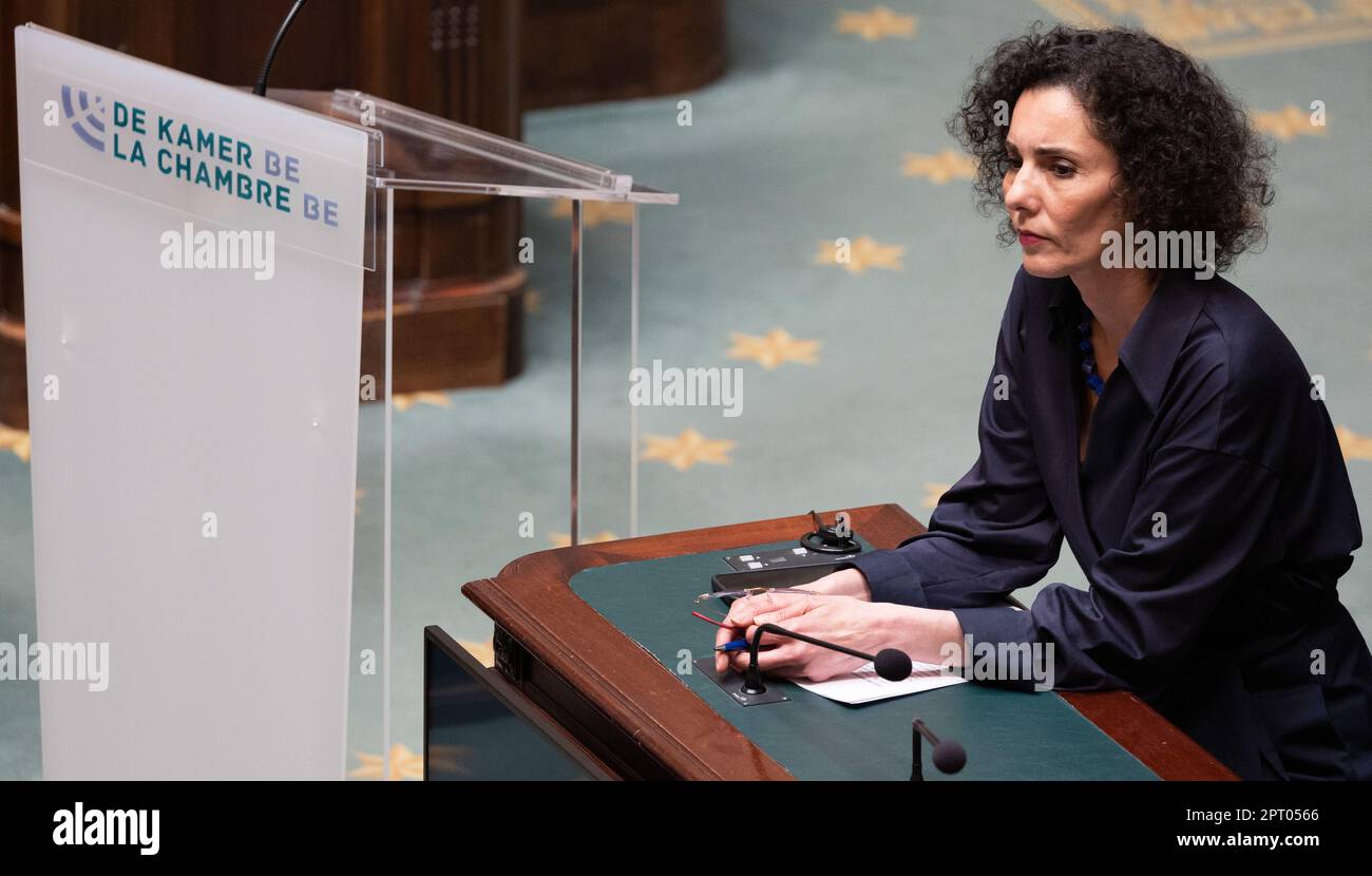 Brussel Belgien 27 April 2023 Aussenministerin Hadja Lahbib Auf Einer Plenarsitzung Der Kammer Im Bundesparlament In